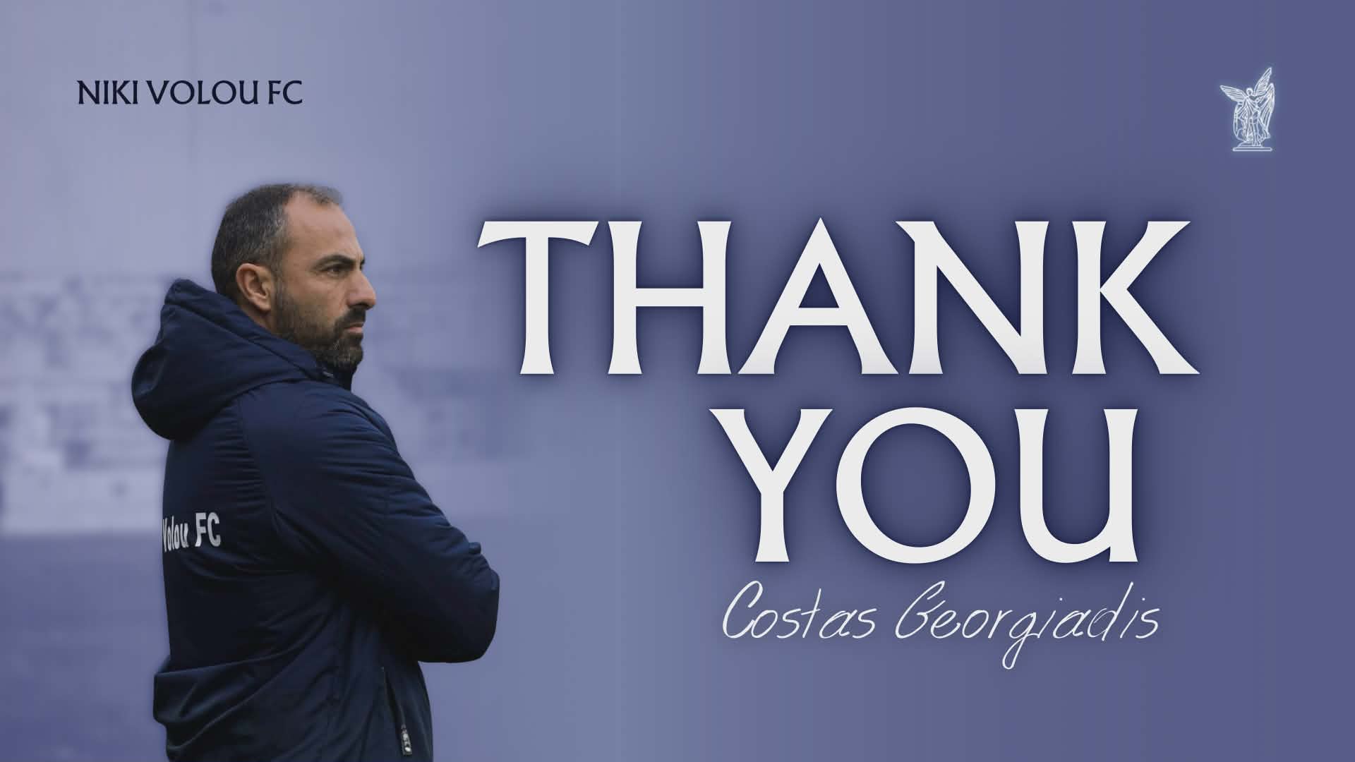 Η ΠΑΕ Νίκη Βόλου ανακοινώνει τη λύση της συνεργασίας της με τον προπονητή, Κωνσταντίνο Γεωργιάδη, καθώς και με τον άμεσο συνεργάτη του, Πάρη Λεωνιδάκη.